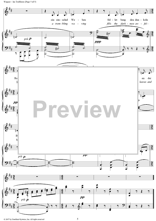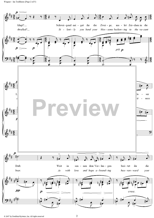 Digital Sheet Music for Wesendonk-Lieder, WWV91, No. 3 - Im Treibhaus (In the Hothouse) by Richard Wagner, Mathilde Wesendonk scored for Voice/Piano; id:264589