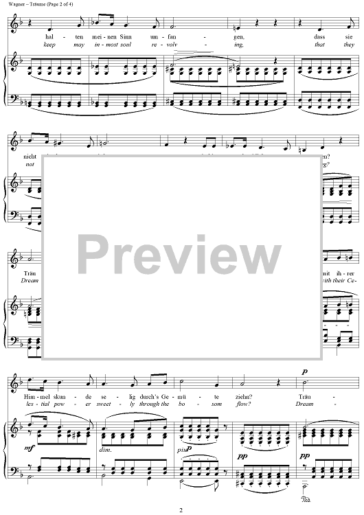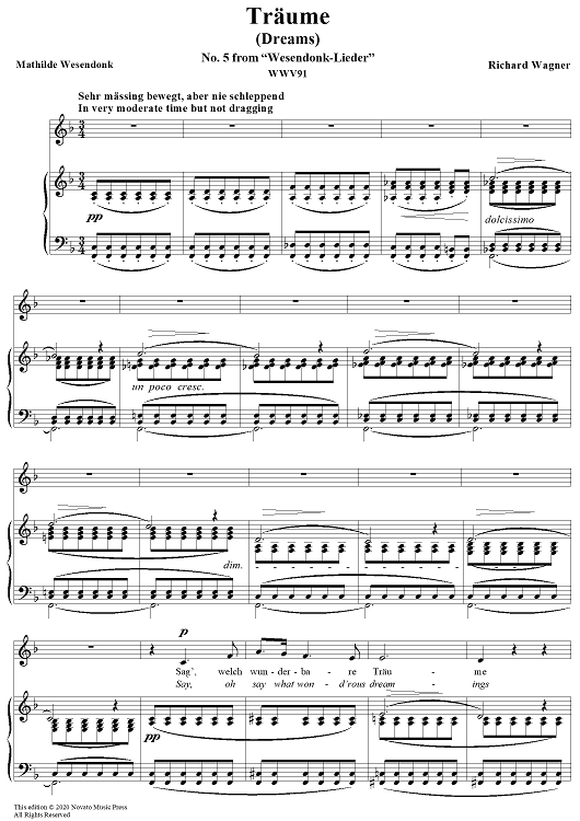 Digital Sheet Music for Wesendonk-Lieder, WWV91, No. 5 - Träume (Dreams) by Richard Wagner scored for Voice/Piano; id:241192
