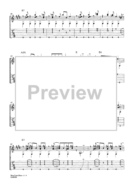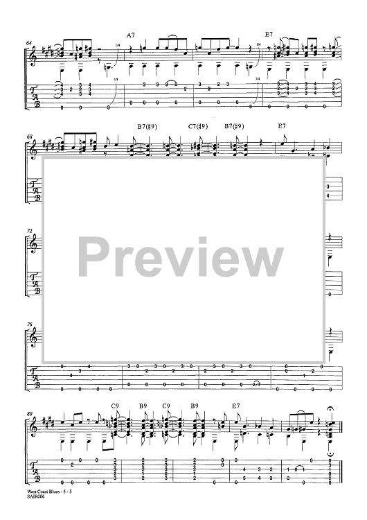 Digital Sheet Music for West Coast Blues (No MP3) by Kenny Sultan scored for Guitar Tab; id:452128