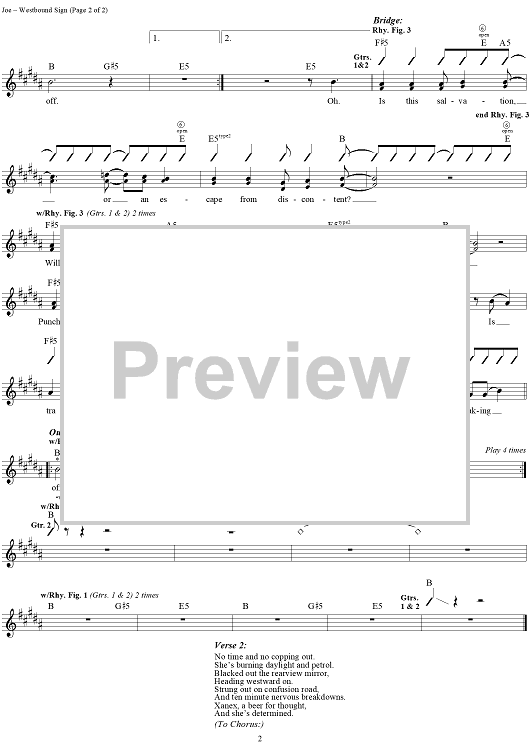 Digital Sheet Music for Westbound Sign by Billie Joe Armstrong, Green Day scored for Guitar Tab/Vocal; id:113044