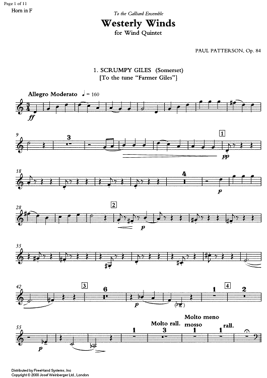 Digital Sheet Music for Westerly Winds Op.84 - Horn in F by Paul Patterson scored for Wind Quintet; id:333601