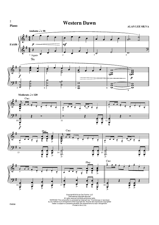 "Western Dawn - Piano" Sheet Music by Alan Lee Silva