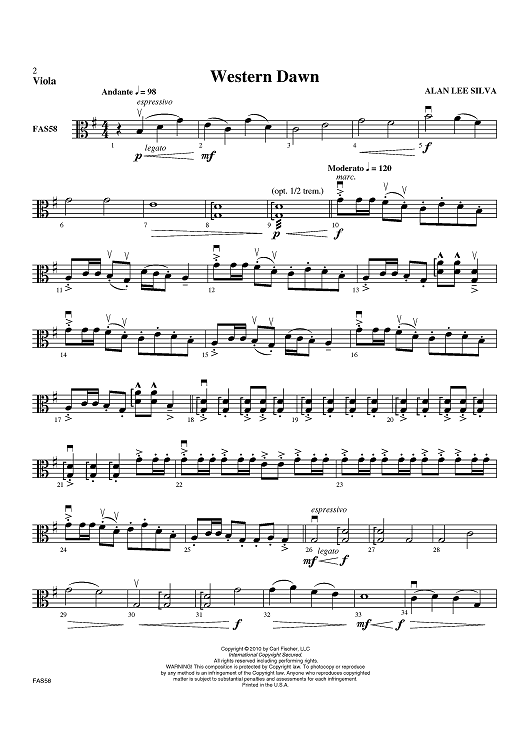 "Western Dawn - Viola" Sheet Music by Alan Lee Silva