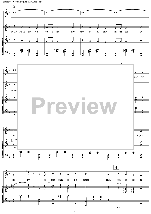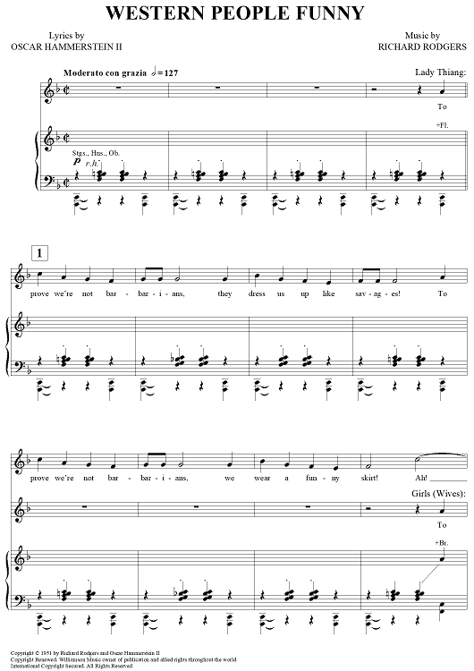 Digital Sheet Music for Western People Funny by Richard Rodgers, Oscar Hammerstein II scored for Piano/Vocal; id:366063