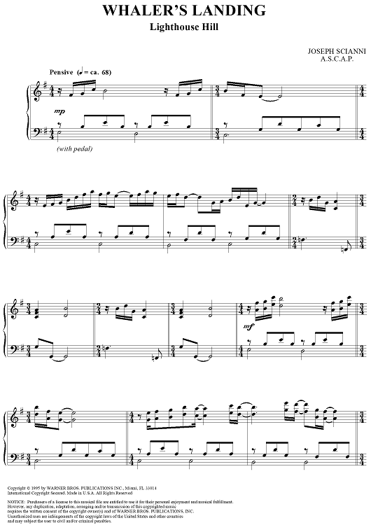 Digital Sheet Music for Whaler’s Landing (Lighthouse Hill) by , Joseph Scianni scored for Piano Solo; id:257243