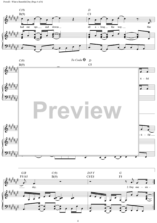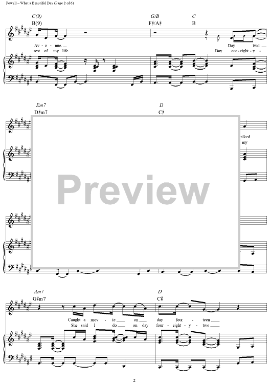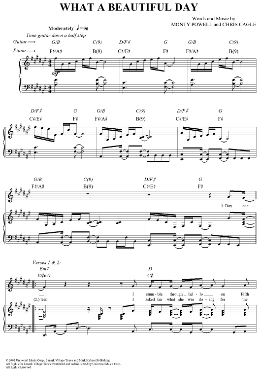 Digital Sheet Music for What a Beautiful Day by Monty Powell, Chris Cagle scored for Piano/Vocal/Chords; id:296420