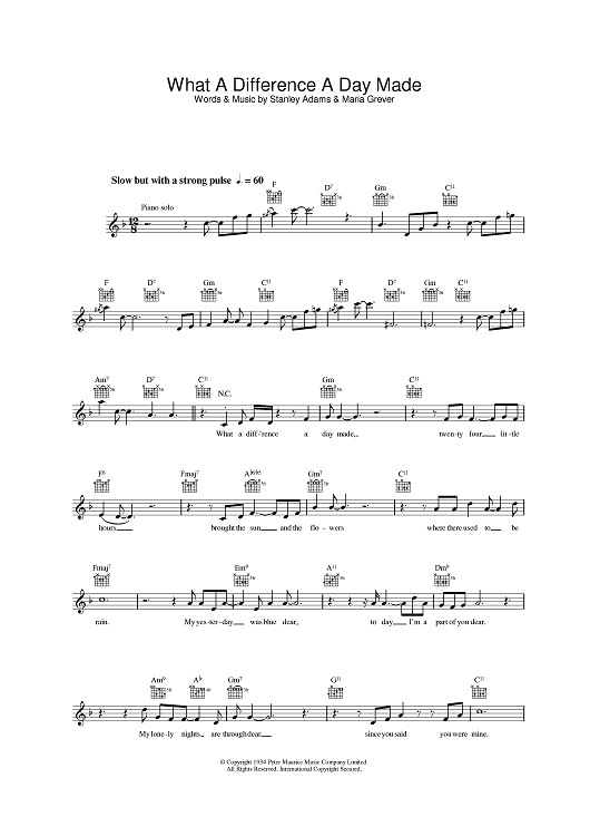 Digital Sheet Music for What A Difference A Day Made by Maria Grever, Stanley Adams, Jamie Cullum scored for Lead Sheet; id:383007