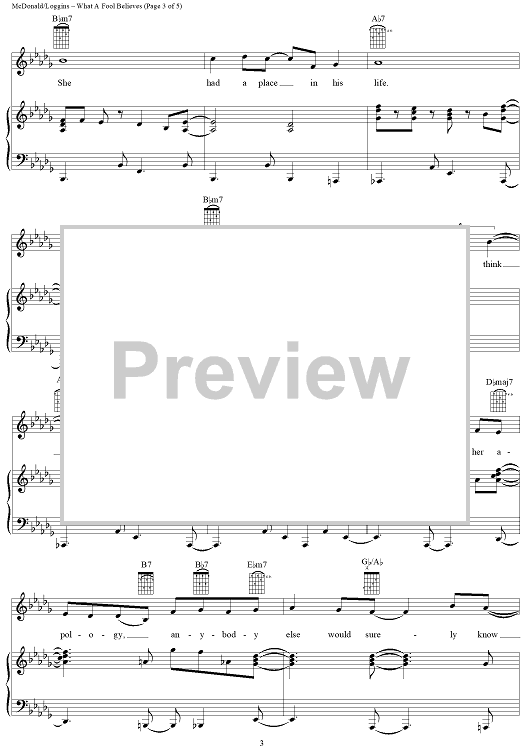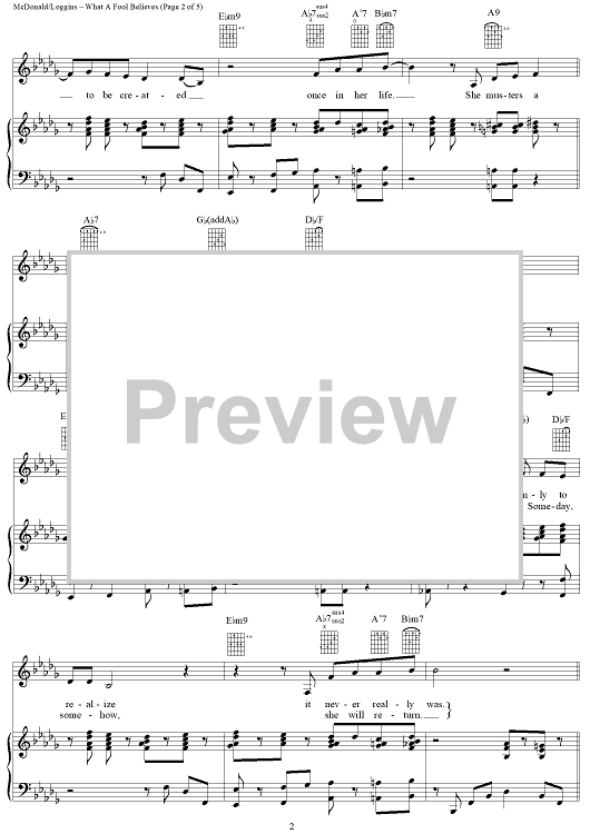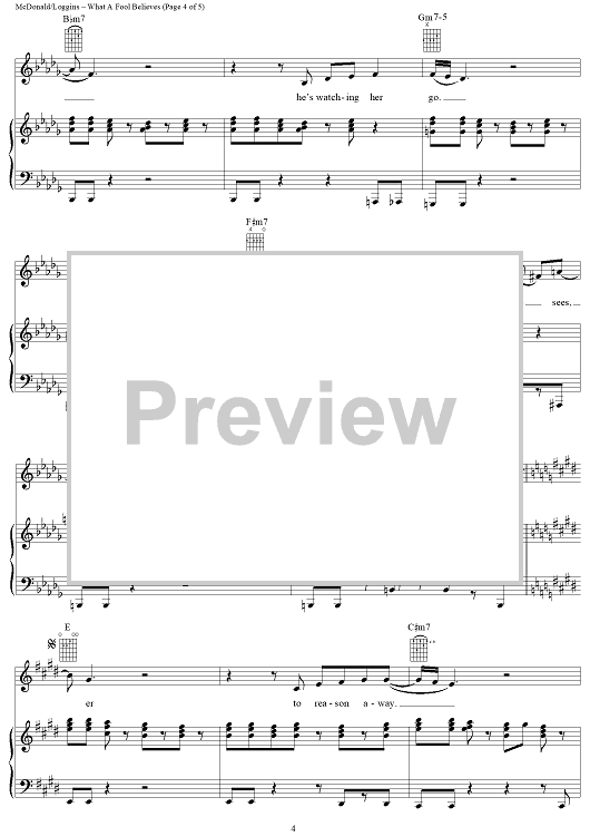Digital Sheet Music for What A Fool Believes by Kenny Loggins, Michael McDonald, The Doobie Brothers scored for Piano/Vocal/Chords; id:109972