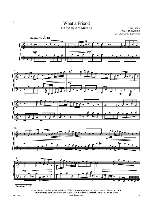Digital Sheet Music for What a Friend (In the style of Mozart) by Charles C. Converse, Lani Smith scored for Piano Solo; id:433582