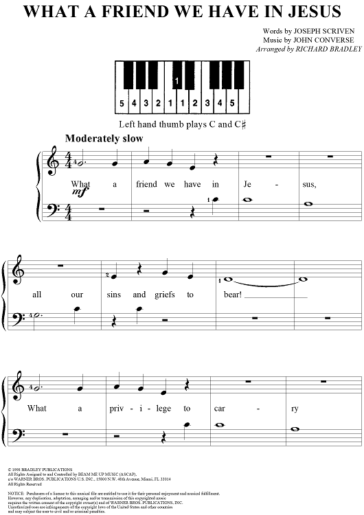 Digital Sheet Music for What a Friend We Have in Jesus by Richard Bradley, Joseph Scriven, John Converse scored for Five Finger Piano/Vocal; id:272234