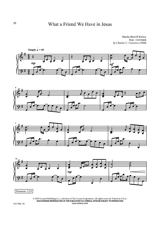 Digital Sheet Music for What A Friend We Have in Jesus by Charles C. Converse, Martha Sherrill Kelsey scored for Piano Solo; id:433694