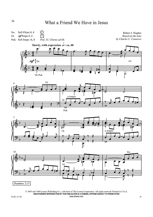 Digital Sheet Music for What a Friend We Have in Jesus by , Charles C. Converse, Robert J. Hughes scored for Organ Solo; id:437279