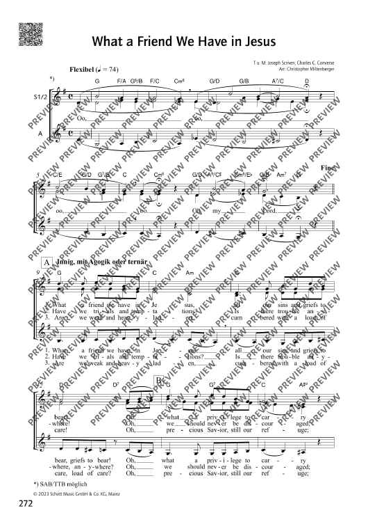Digital Sheet Music for What a Friend We Have in Jesus by Christopher Miltenberger, Charles Crozat Converse scored for School Choir, Mixed Choir (ssa, Sab, Ttb); id:500611