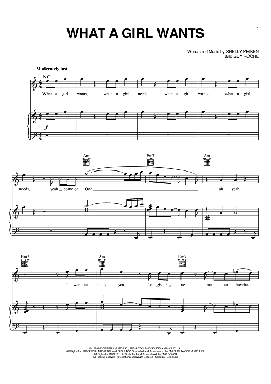 Digital Sheet Music for What A Girl Wants by Shelly Peiken, Guy Roche, Christina Aguilera scored for Piano/Vocal/Chords; id:368684