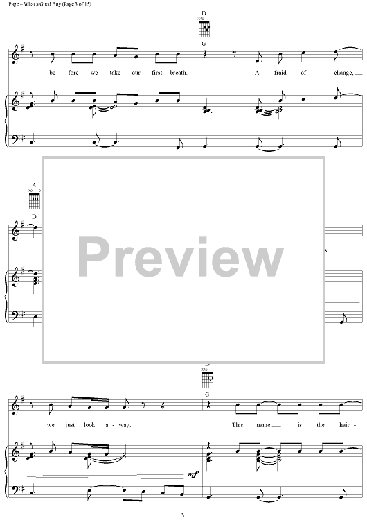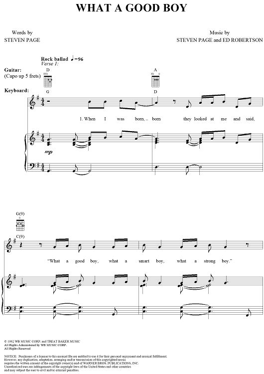 Digital Sheet Music for What a Good Boy by Steven Page, Ed Robertson, Barenaked Ladies scored for Piano/Vocal/Chords; id:288897