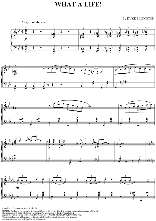 Digital Sheet Music for What a Life! by Duke Ellington scored for Piano Solo; id:116333