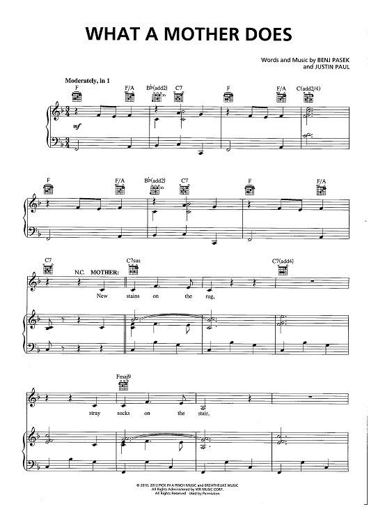 Digital Sheet Music for What A Mother Does by Benj Pasek, Justin Paul scored for Piano/Vocal/Chords; id:438097