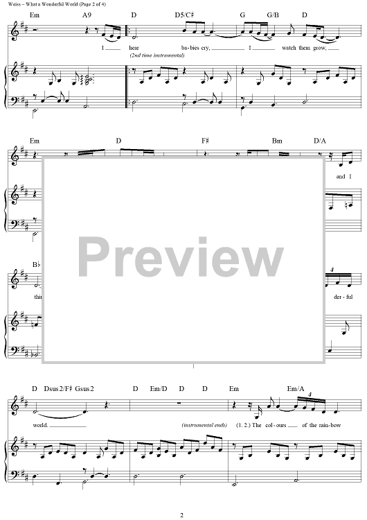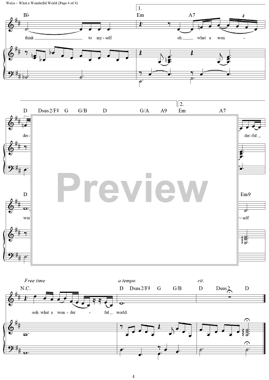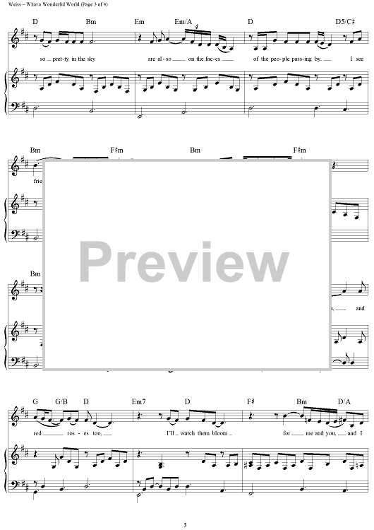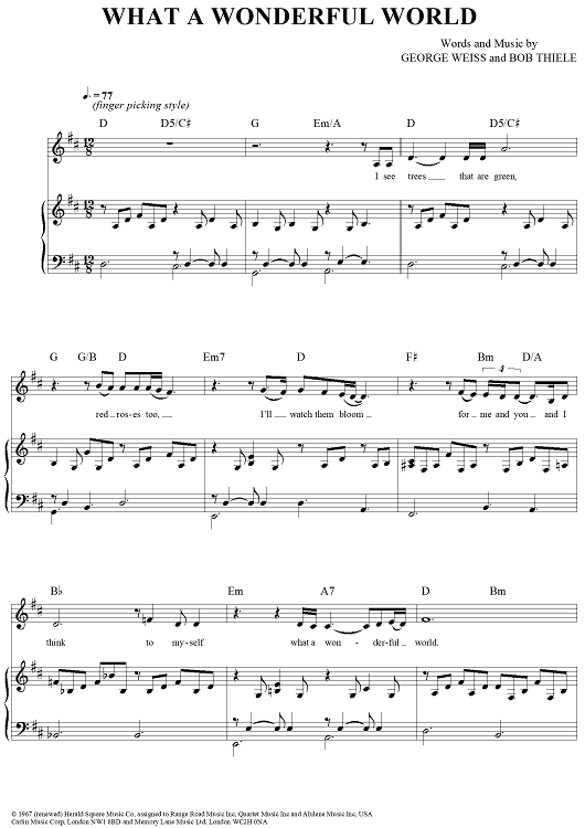 Digital Sheet Music for What a Wonderful World by George Weiss, Bob Thiele, Eva Cassidy scored for Piano/Vocal/Chords; id:297093