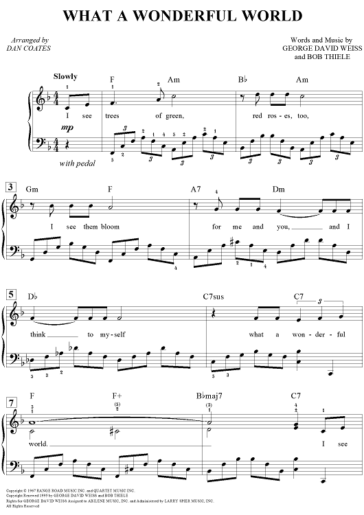 Digital Sheet Music for What a Wonderful World by Dan Coates, Bob Thiele, George David Weiss scored for Easy Piano/Vocal/Chords; id:451989