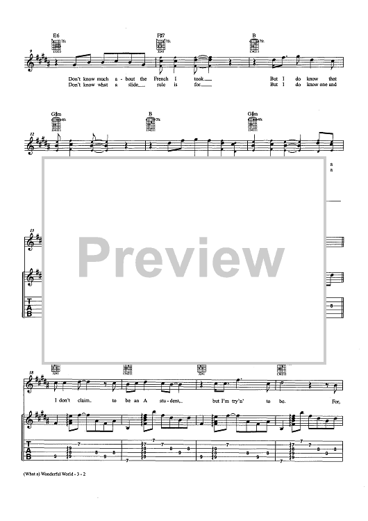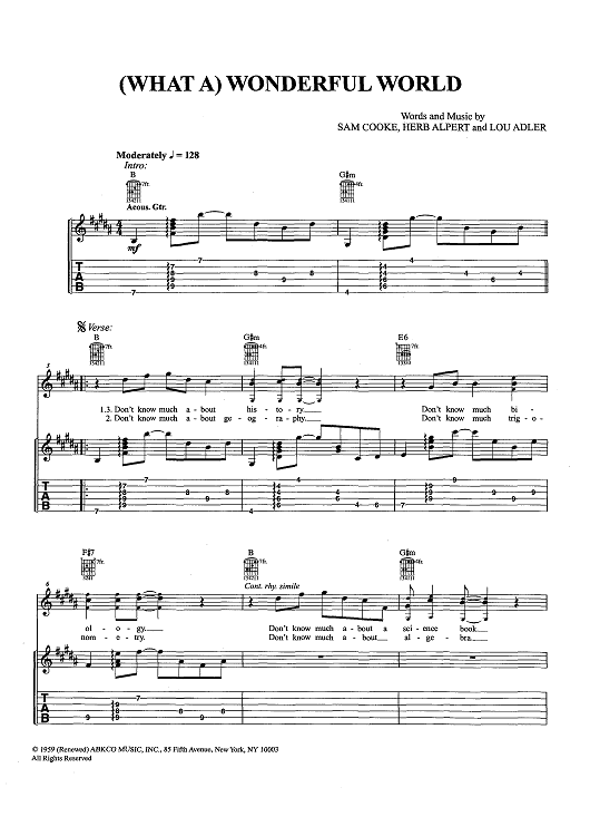 Digital Sheet Music for (What A) Wonderful World by Herb Alpert, Sam Cooke, Lou Adler scored for Easy Guitar Tab/Vocal/Chords; id:458980