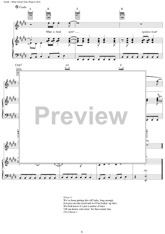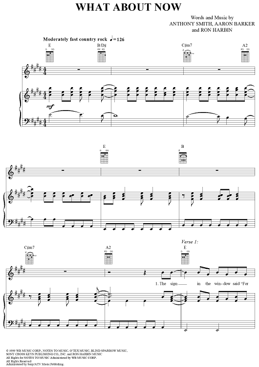 Digital Sheet Music for What About Now by Lonestar, Anthony Smith, Ron Harbin, Aaron Barker scored for Piano/Vocal/Chords; id:304283