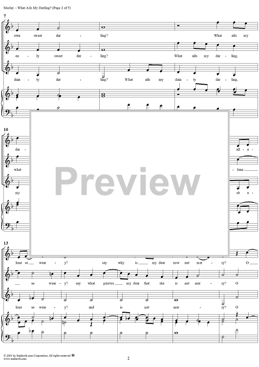 "What Ails My Darling?" Sheet Music by Thomas Morley