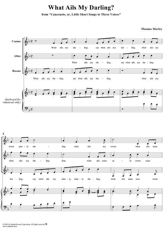 Digital Sheet Music for What Ails My Darling? by Thomas Morley scored for Three-part Mixed Chorus; id:260316