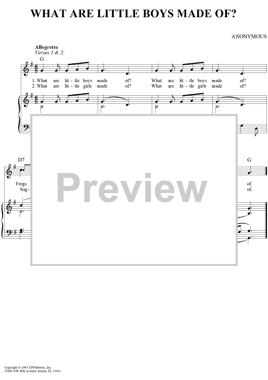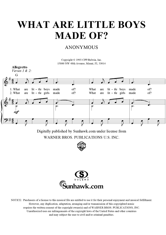 Digital Sheet Music for What Are Little Boys Made Of? by Unknown Writer scored for Easy Piano/Vocal; id:277062