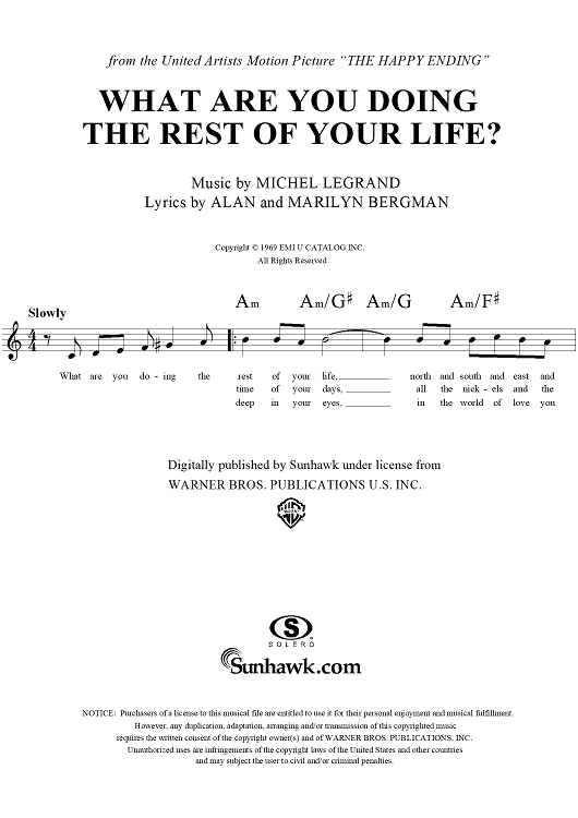 Digital Sheet Music for What Are You Doing the Rest of Your Life? by Michel LeGrand, Alan Bergman, Marilyn Bergman scored for Lead Sheet; id:113098