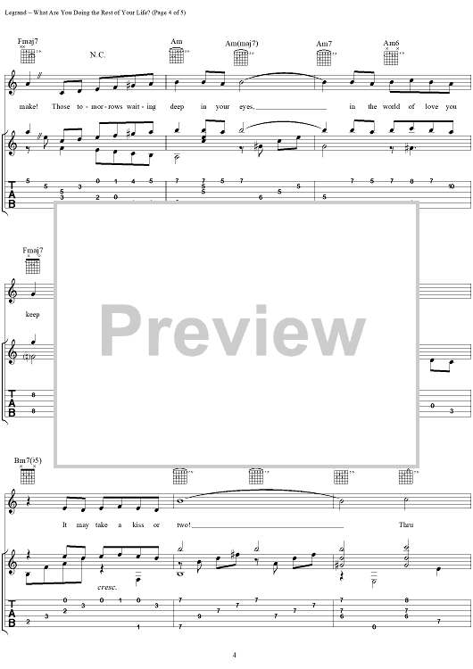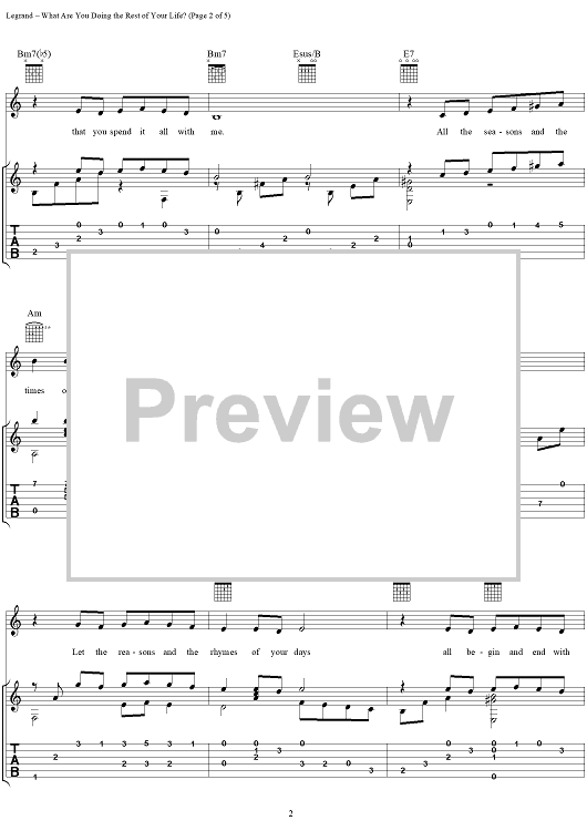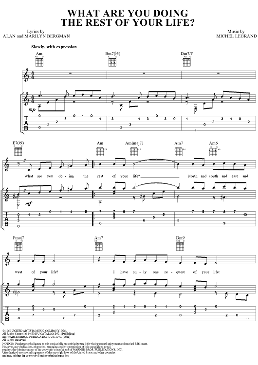 Digital Sheet Music for What Are You Doing the Rest of Your Life? by Michel LeGrand, Alan Bergman, Marilyn Bergman scored for Guitar Tab/Vocal; id:240891