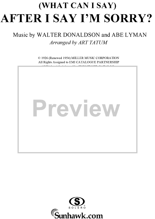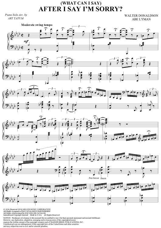 Digital Sheet Music for (What Can I Say) After I Say I'm Sorry? by Art Tatum, Walter Donaldson, Abe Lyman scored for Piano Solo; id:112180
