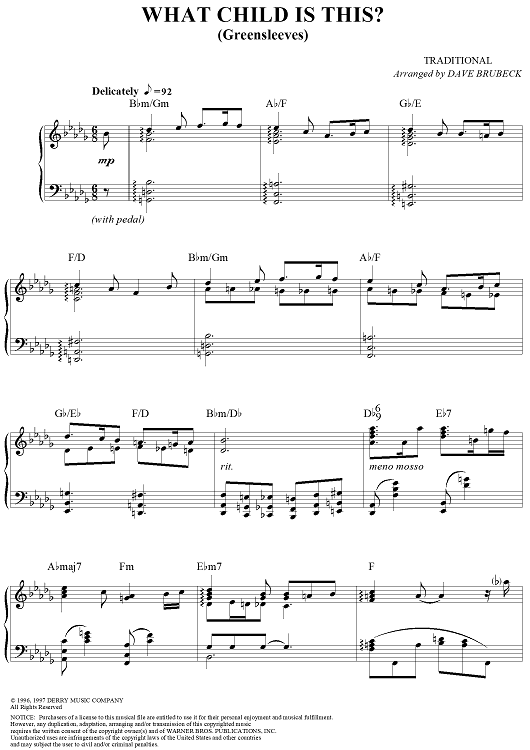 Digital Sheet Music for What Child Is This? (Greensleeves) by Dave Brubeck, Traditional scored for Piano Solo; id:311560