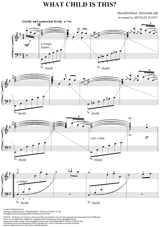 Digital Sheet Music for What Child Is This? by Michael Scott, Traditional scored for Piano Solo; id:262126