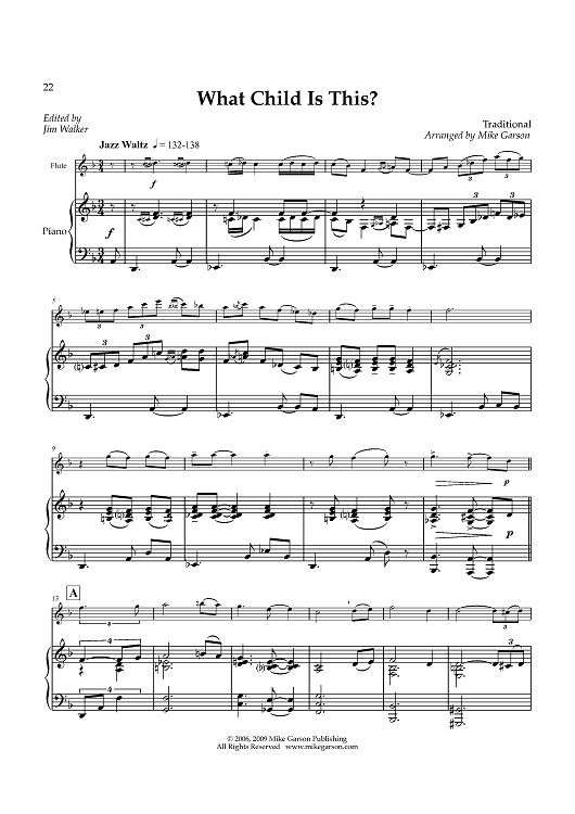 Digital Sheet Music for What Child Is This? by Mike Garson, Traditional scored for Flute/Piano; id:405177