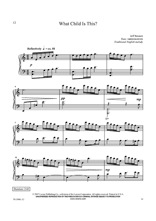 Digital Sheet Music for What Child Is This? by Traditional English Melody, Jeff Bennett scored for Piano Solo; id:434685