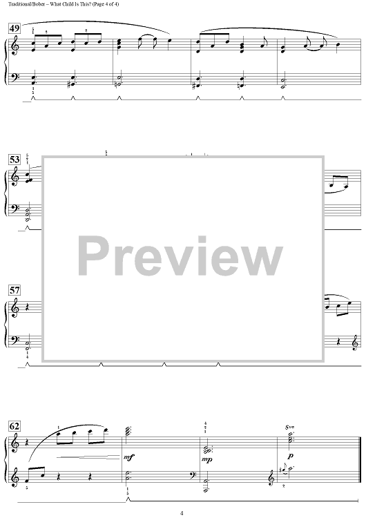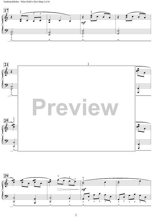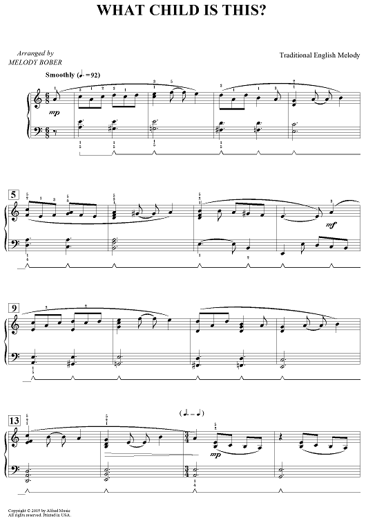 Digital Sheet Music for What Child Is This? by Traditional English Melody, Melody Bober scored for Piano; id:458952