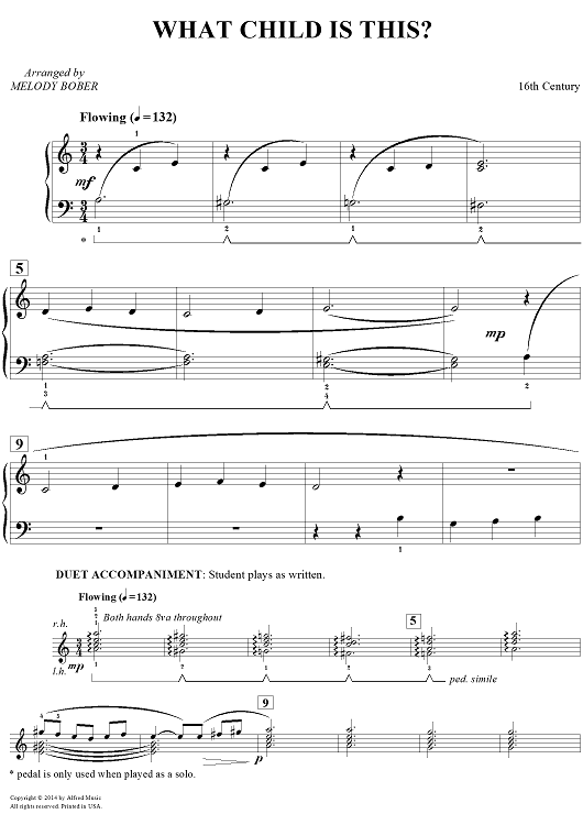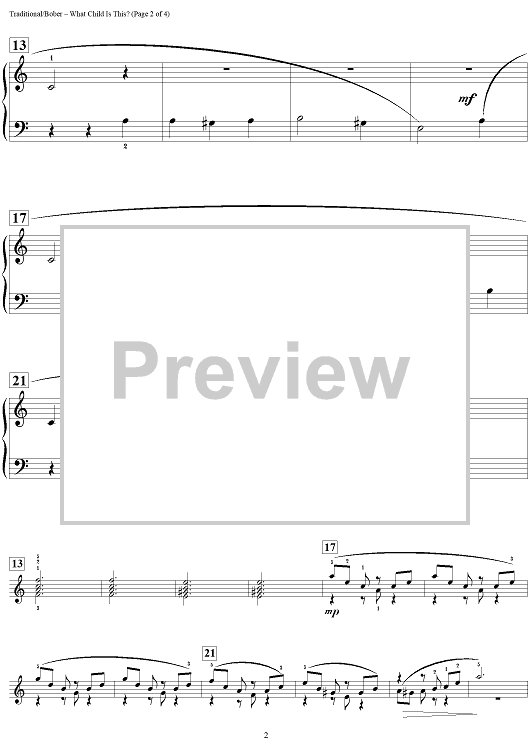 Digital Sheet Music for What Child Is This? by 16th Century Carol, Melody Bober scored for Piano; id:459915