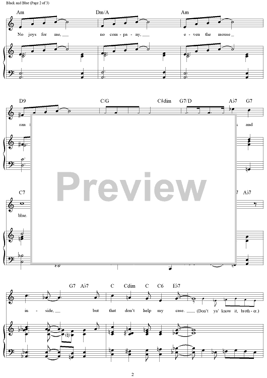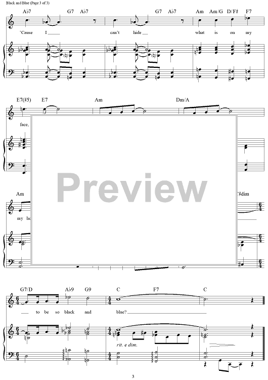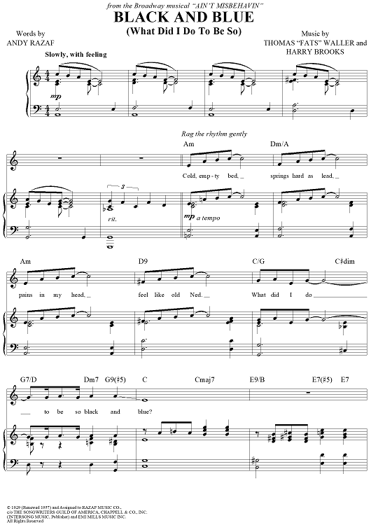 Digital Sheet Music for (What Did I Do To Be So) Black and Blue by Fats Waller, Harry Brooks, Andy Razaf scored for Piano/Vocal/Chords; id:264442