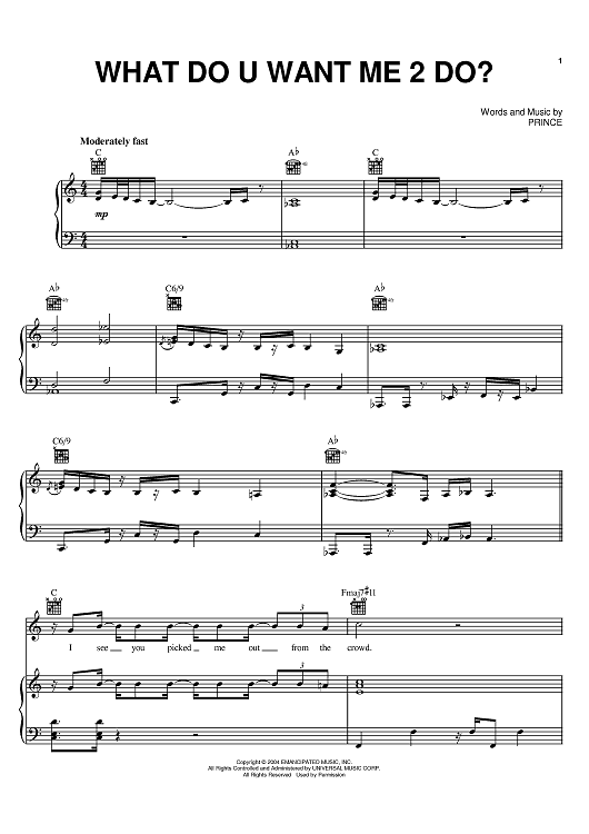 Digital Sheet Music for What Do U Want Me 2 Do? by Prince scored for Piano/Vocal/Chords; id:389718