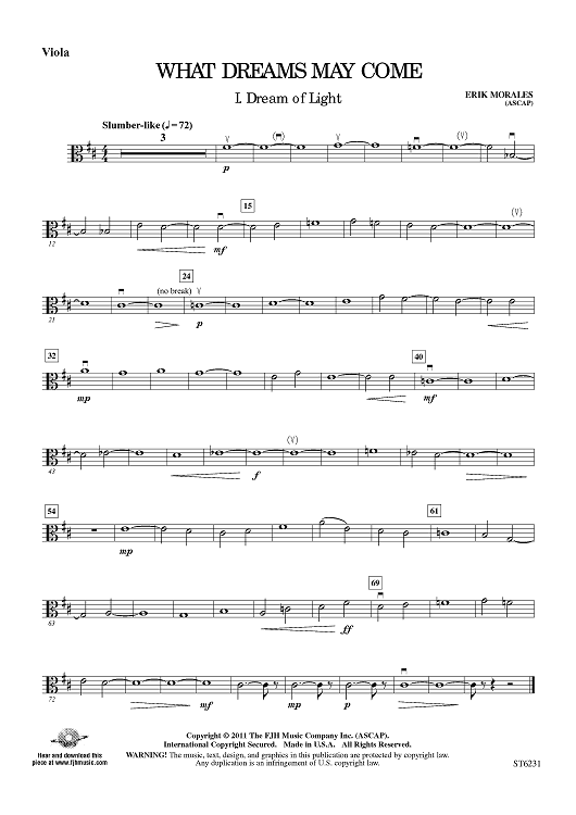 Digital Sheet Music for What Dreams May Come - Viola by Erik Morales scored for String Orchestra; id:421865