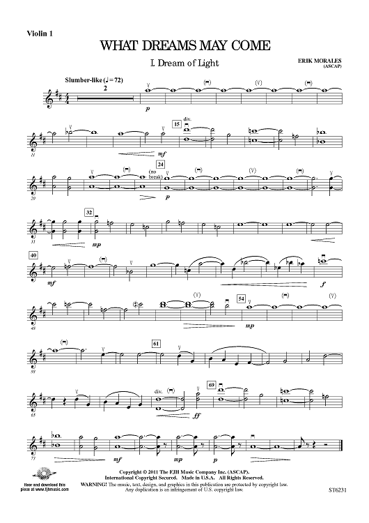 Digital Sheet Music for What Dreams May Come - Violin 1 by Erik Morales scored for String Orchestra; id:421862