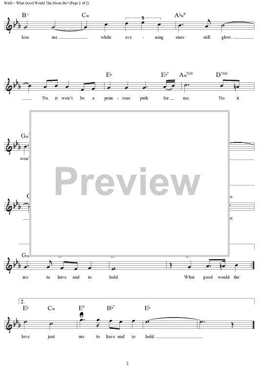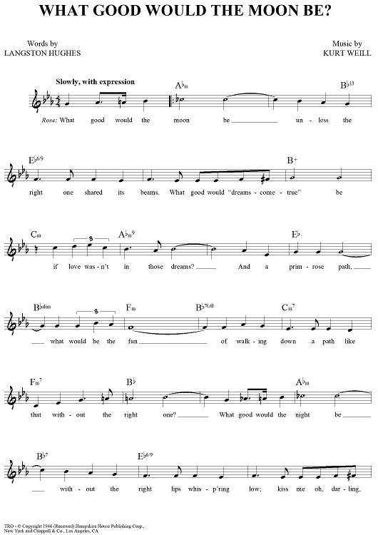 Digital Sheet Music for What Good Would The Moon Be? by Langston Hughes, Kurt Weill scored for Lead Sheet; id:457817