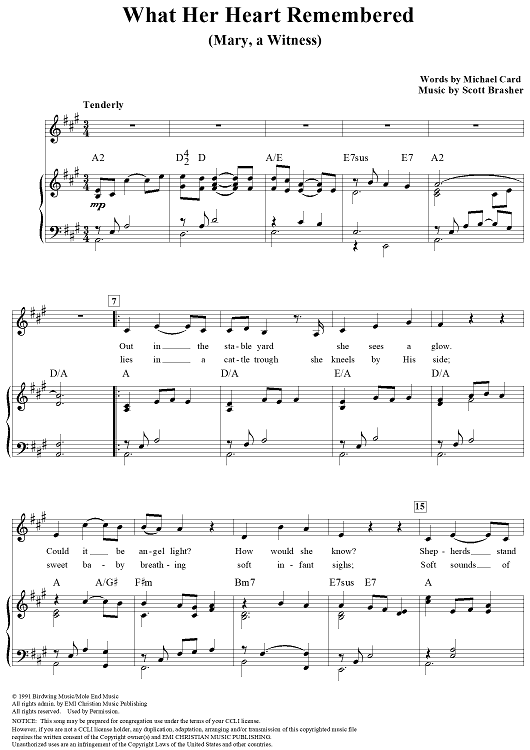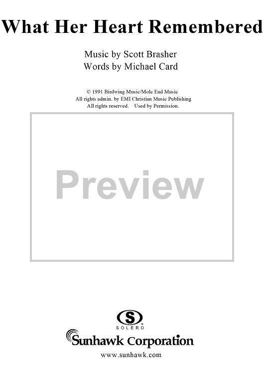 Digital Sheet Music for What Her Heart Remembered by Michael Card, Scott Brasher scored for Piano/Vocal/Chords; id:113512