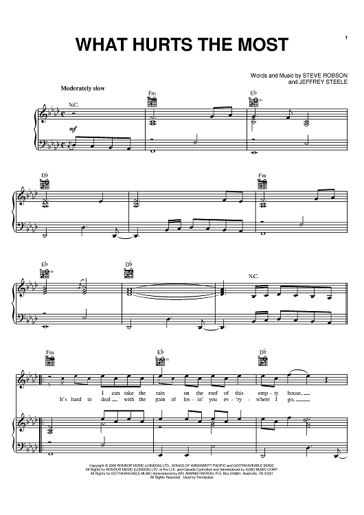 Digital Sheet Music for What Hurts The Most by Jeffrey Steele, Rascal Flatts, Steve Robson scored for Piano/Vocal/Chords; id:388676