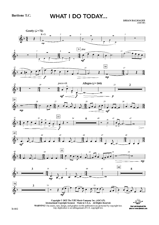Digital Sheet Music for What I Do Today... - Baritone TC by Brian Balmages scored for Concert Band; id:498911