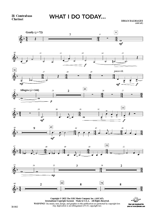Digital Sheet Music for What I Do Today... - Bb Contra Bass Clarinet by Brian Balmages scored for Concert Band; id:498900