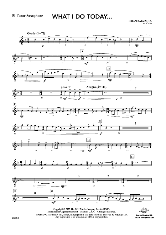 Digital Sheet Music for What I Do Today... - Bb Tenor Sax by Brian Balmages scored for Concert Band; id:498903