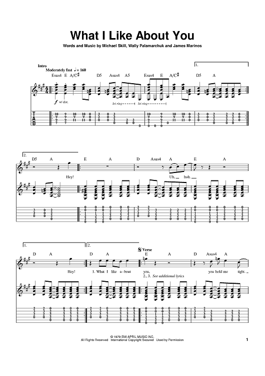 Digital Sheet Music for What I Like About You by James Marinos, Wally Palamarchuk, The Romantics, Michael Skill scored for Guitar Tab; id:374182