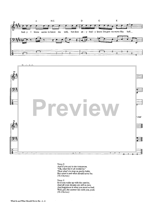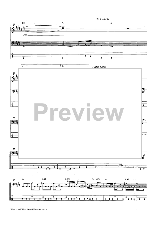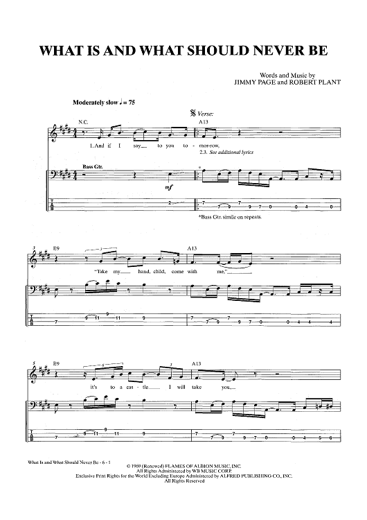 Digital Sheet Music for What Is And What Should Never Be by Jimmy Page, Led Zeppelin, Robert Plant scored for Bass Tab; id:444103