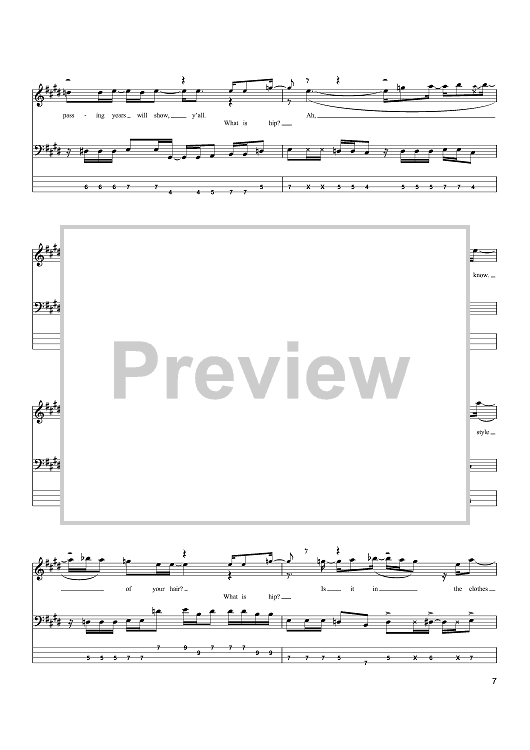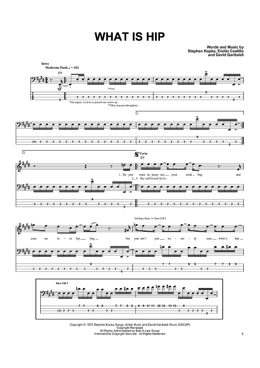 Digital Sheet Music for What Is Hip by Emilio Castillo, David Garibaldi, Stephen Kupka, Rocco Prestia, Tower Of Power scored for Bass Tab; id:402508